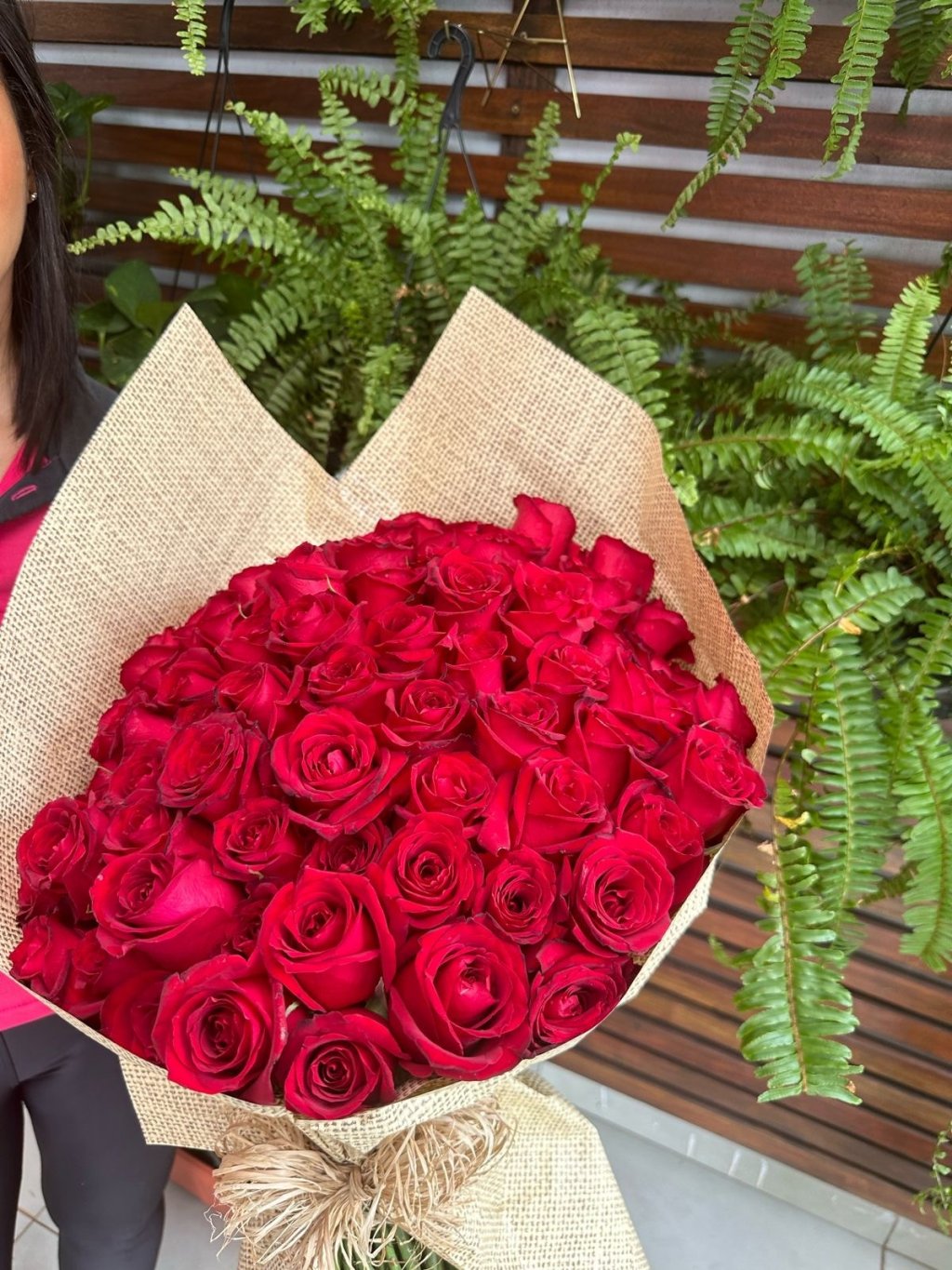 Encante quem você ama com o deslumbrante buquê de 100 Rosas Vermelhas, envolto em uma embalagem especial. Surpreenda e transmita todo o seu amor com essa expressão de carinho em forma de flores. 🌹❤️